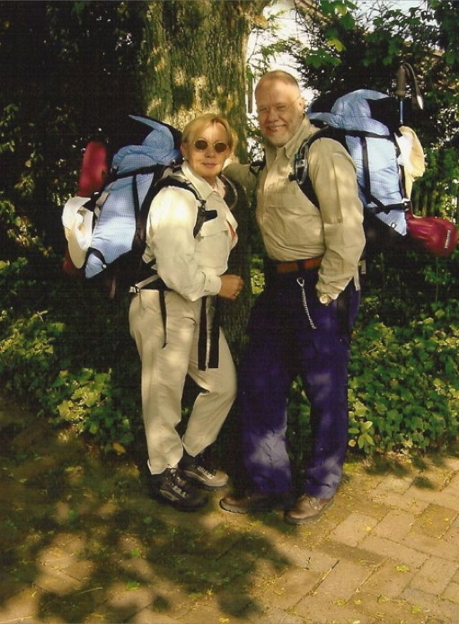 RMS mit seiner Frau 2002 beim Aufbruch nach Santiago de Compostela, dem uralten Pilgerweg.