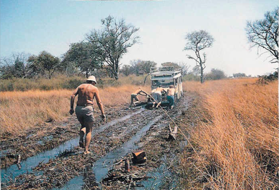 1993: Durch die Länder des südlichen Afrika - Abenteuer auf eigene Faust. Hier stecken geblieben im Gebiet des Okavango-Deltas (Botswana).