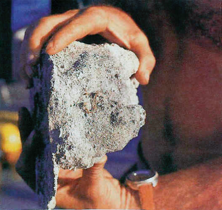 1981: Aus einem Korallenstein ragen einige Glieder einer 2 Pfund schweren Goldkette heraus, die zu den unermesslichen Schätzen der ATOCHA gehörte.