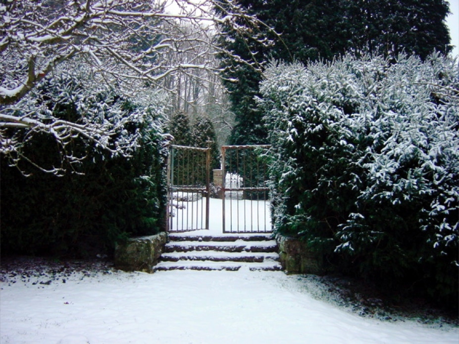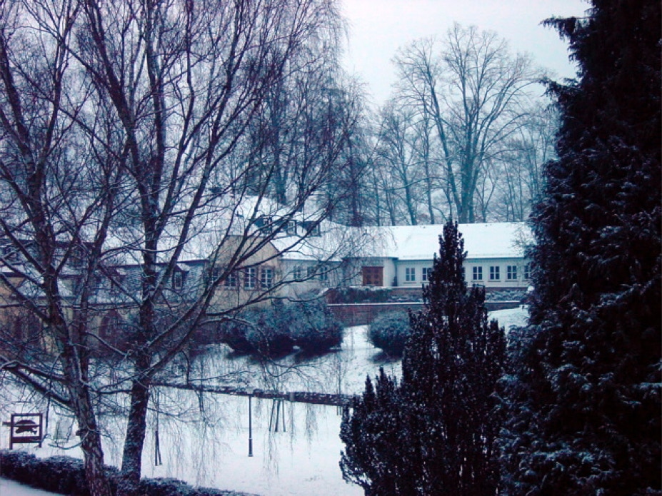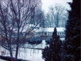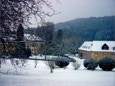 Die verschneite Abtei aus Osten von jenseits der Salm.