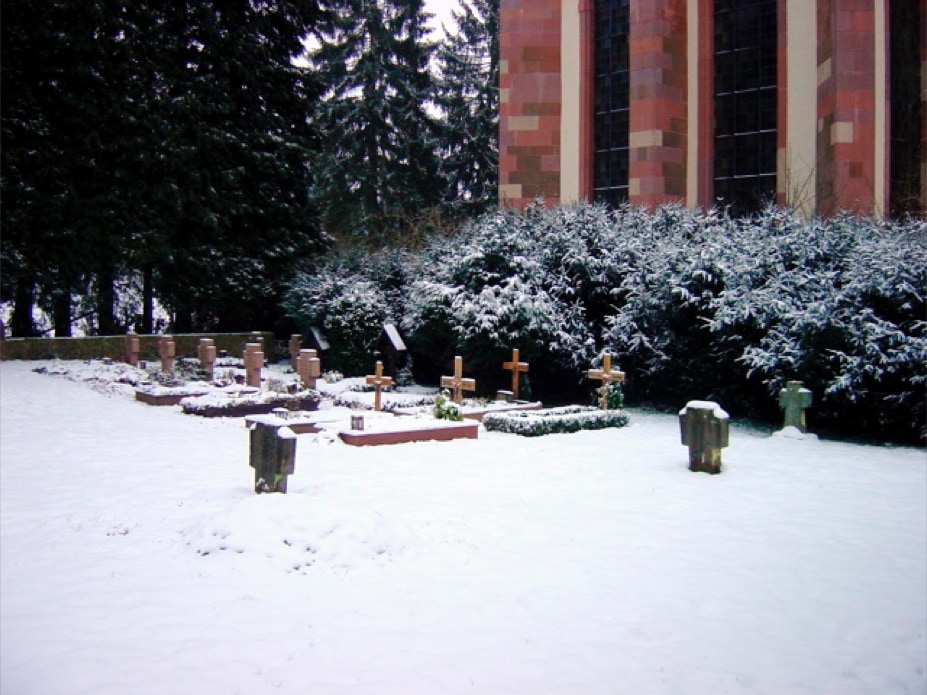 Die bescheidenen Gräber der verstorbenen Mitbrüder im Schatten der Abteikirche.