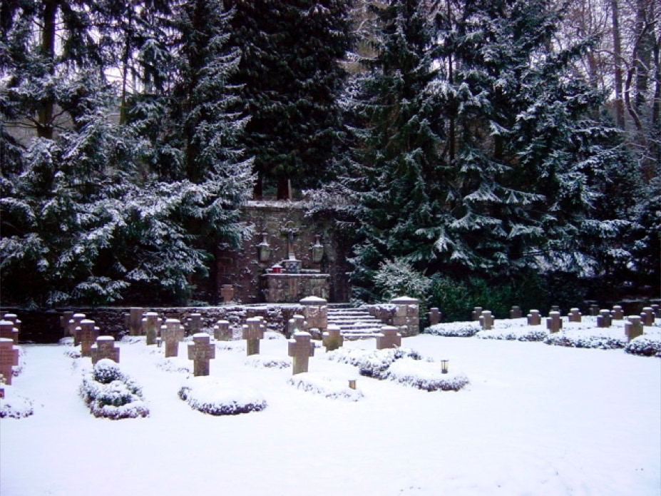 Mönchsgräber und dahinter Altar.