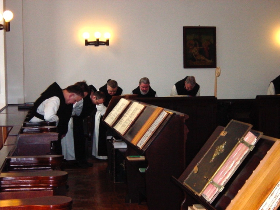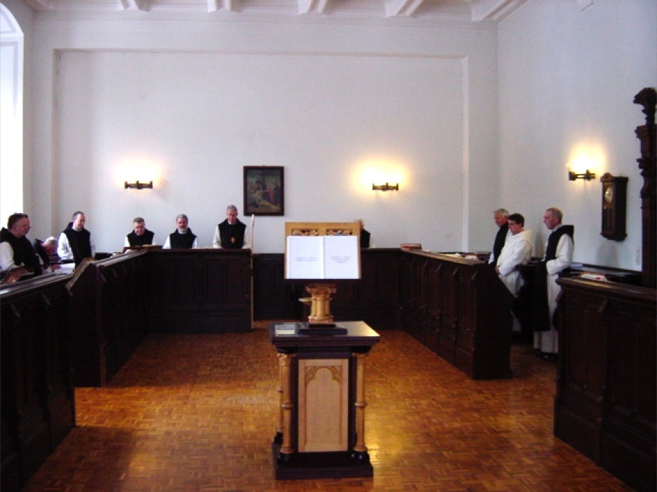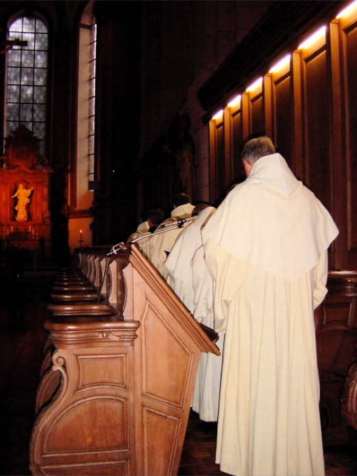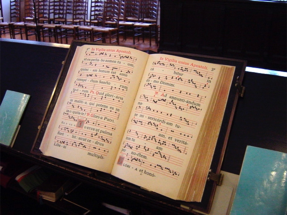 Der gregorianische Gesang der Mönche erfüllt die Abteikirche zur Vesper und zur Komplet.