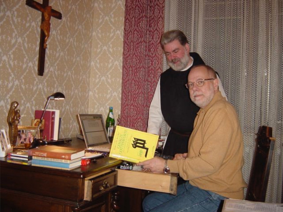 RMS mit seinem 'Novizenmeister' Pater Pius, neben dem er im Chorgestühl steht und der ihm stets mit liebevoller Geduld durch die manchmal recht komplizierte Abfolge der zu singenden Psalmen und anderen Texte hilft.