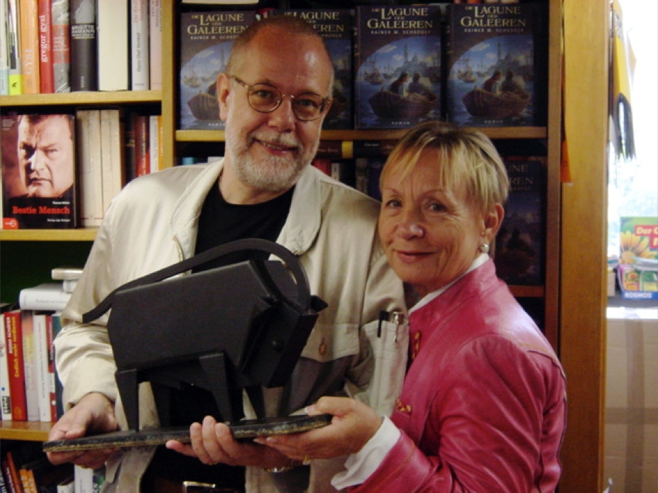 Sigrid Alsleben und RMS mit den neuesten Büchern des Autors.