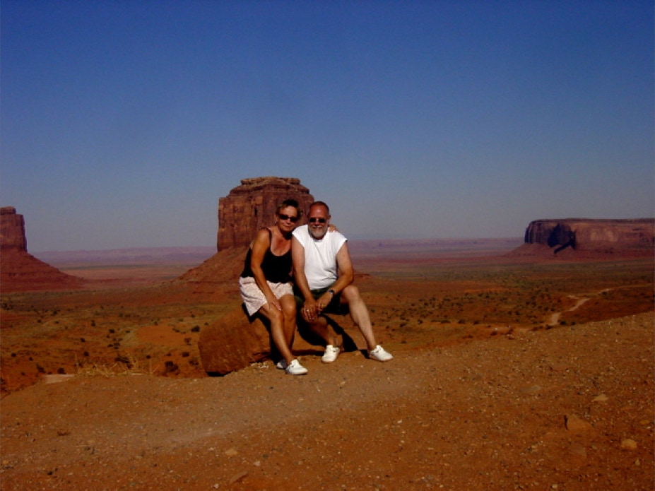 RMS und Ehefrau Helga im Monument Valley (Arizona) während der dreimonatigen Recherchenreise im Sommer 2006 durch den Westen und Südwesten der USA.