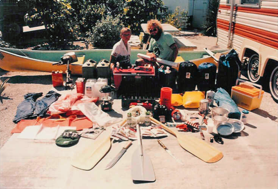 1980/81: Ausrüstung für die Kanu-Durchquerung der Wasser- und Sumpfwildnis der Everglades, allein und in 8 Tagen. Wobei jeder Tropfen Trinkwasser mitgeführt werden mußte – unter anderem…