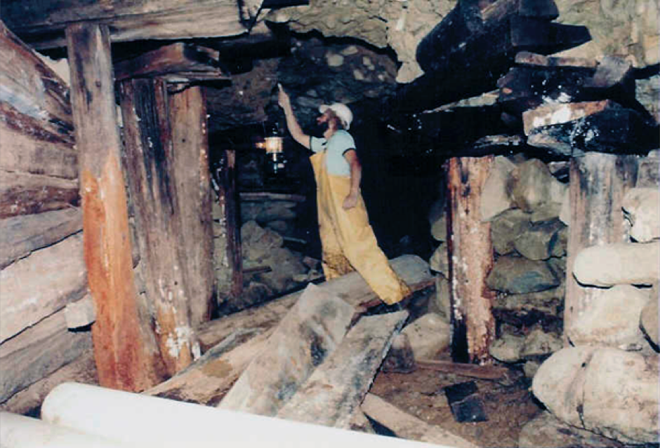 1981: Arbeits-Aufenthalt in einer Goldmine hoch in den Bergen der Sierra Nevada. Im Stollen nach einem lebensgefährlichen Einbruch der Stollendecke... nicht der erste und nicht der letzte.