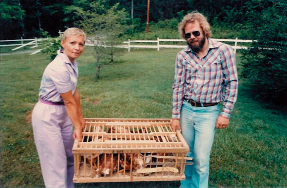 1982: Nach dem Golden Retriever Baby Ben kommen als nächstes 14 Hühner auf die Farm. Der selbst gebaute Hühnerstall in einem Schuppen wartet schon. Von nun an gibt es jeden Morgen frische Eier!