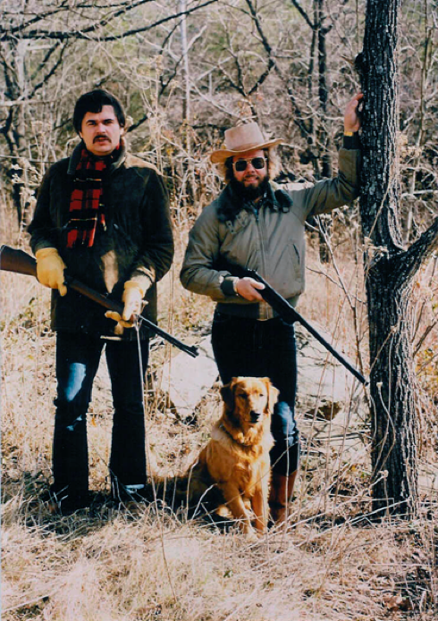 1983: RMS mit Golden Retriever Ben und dem Schriftstellerkollegen Thomas Jeier. Geschossen wurde auf der Farm jedoch nichts. Die Waffen dienten nur zum Schutz. Einzig und allein eine Schlange musste mal dran glauben...