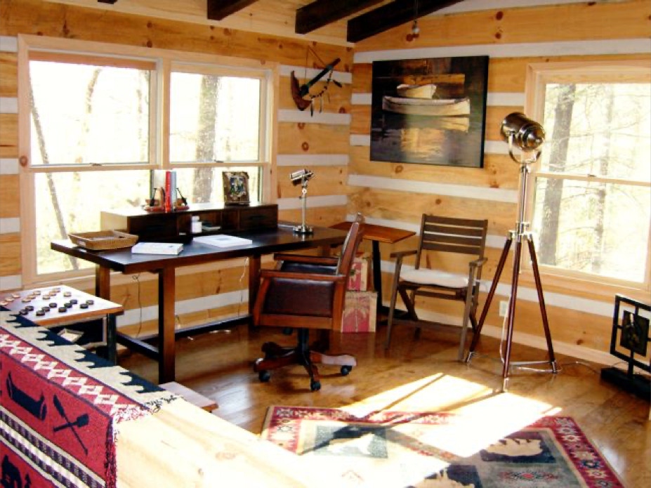Das Arbeitszimmer von RMS im Loft des Blockhauses "Dancing Bear Lodge" in den Bergen von Georgia