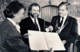 2000: RMS und Frau Helga (links im Bild) mit dem Verleger des Arena-Verlags Jürgen Weidenbach und Cheflektorin Isa-Maria Röhrig-Roth.