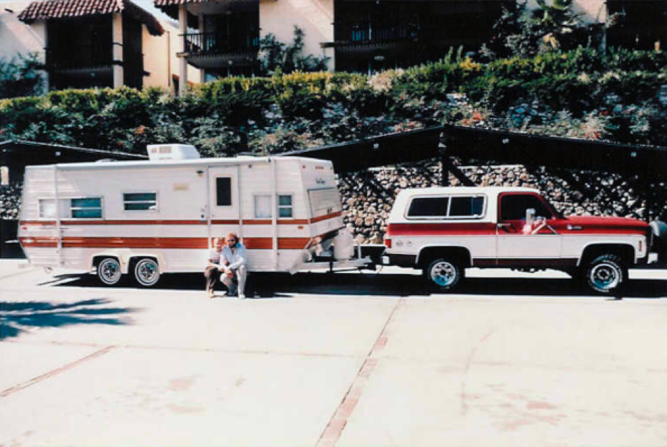 1980: Das Wohnwagengespann mit dem RMS und seine Frau Helga ein Jahr lang auf Abenteuerreise kreuz und quer durch die USA, Kanada und Mexiko gefahren sind.