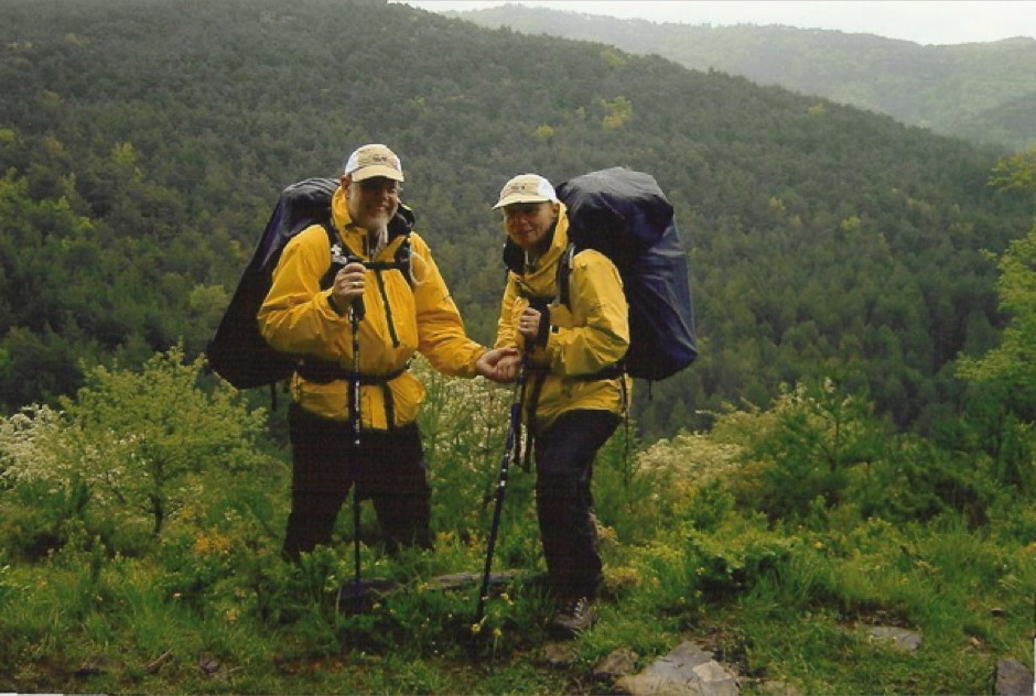 RMS mit seiner Frau 2002 beim Aufbruch nach Santiago de Compostela, dem uralten Pilgerweg.