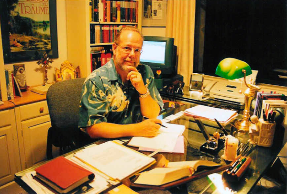 RMS in seinem Zimmer bei der Arbeit am Roman "Das Kloster der Ketzer".