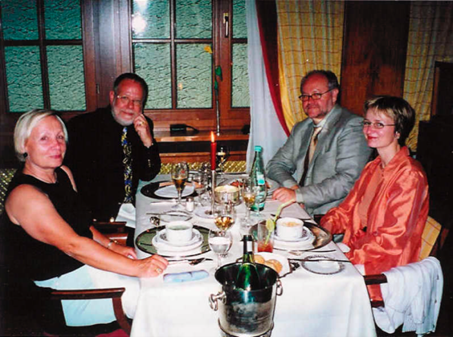 2000: RMS und Frau Helga (links im Bild) mit dem Verleger des Arena-Verlags Jürgen Weidenbach und Cheflektorin Isa-Maria Röhrig-Roth.