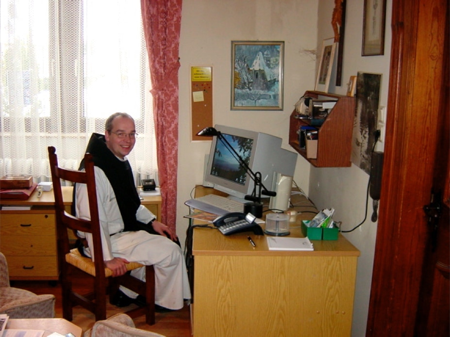 Gastbruder Markus in seinem High-Tech-Büro. Auch Mönche sind heute mit dem World-Wide-Web vernetzt und machen sich diese Technik vielfältig zu Nutze.