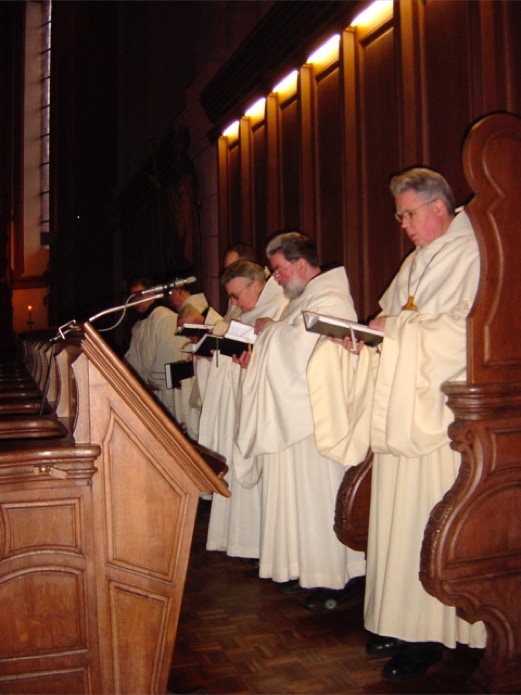 Der gregorianische Gesang der Mönche erfüllt die Abteikirche zur Vesper und zur Komplet.