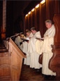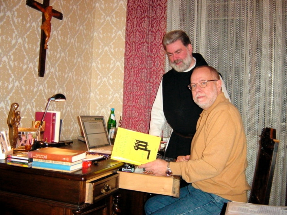 RMS mit seinem 'Novizenmeister' Pater Pius, neben dem er im Chorgestühl steht und der ihm stets mit liebevoller Geduld durch die manchmal recht komplizierte Abfolge der zu singenden Psalmen und anderen Texte hilft.
