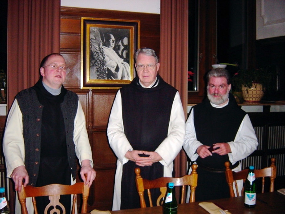 Die Klosteroberens: links Prior Pater Johannes, in der Mitte Abt Bruno Fromme und rechts der einstige langjährige Prior Pater Martin, der aus Krankheitsgründen das Amt abgegeben hat und nun Subprior ist.