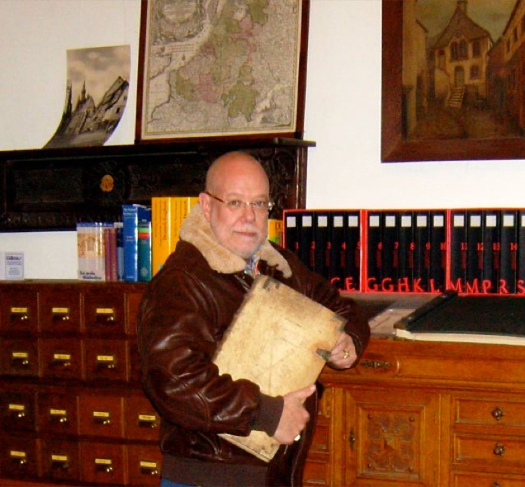 RMS bei Recherchen in der Klosterbibliothek von Himmerod.