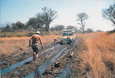 1981: Die ersten Pfosten für den Zaun, der am Ende über eine Meile lang ist! Mit dem 'man killer' (der seinen Namen nicht von ungefähr hat!) werden die Löcher in die Erde gerammt.