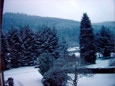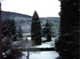 Die bewaldeten Bergrücken nach nächtlichem Schneefall, die das Kloster im idyllischen Salm-Tal umgeben und zahlreiche Wandermöglichkeiten bieten.