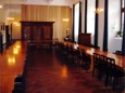Das Parlatorium. Hier nehmen gewöhnlich die weiblichen Gäste und auch diejenigen männlichen Besucher die Mahlzeiten ein, die beim Essen auf Unterhaltung nicht verzichten wollen. Während der Wintermonate nehmen hier jedoch alle Gäste die Mahlzeiten zusammen mit den Mönchen ein. Dann gilt für alle das Gebot der Stille.