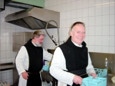 Bruder Niklaus und Pater Martin im Klosterkeller beim Einräumen des schmutzigen Geschirrs in die modernen Geschirrspüler.